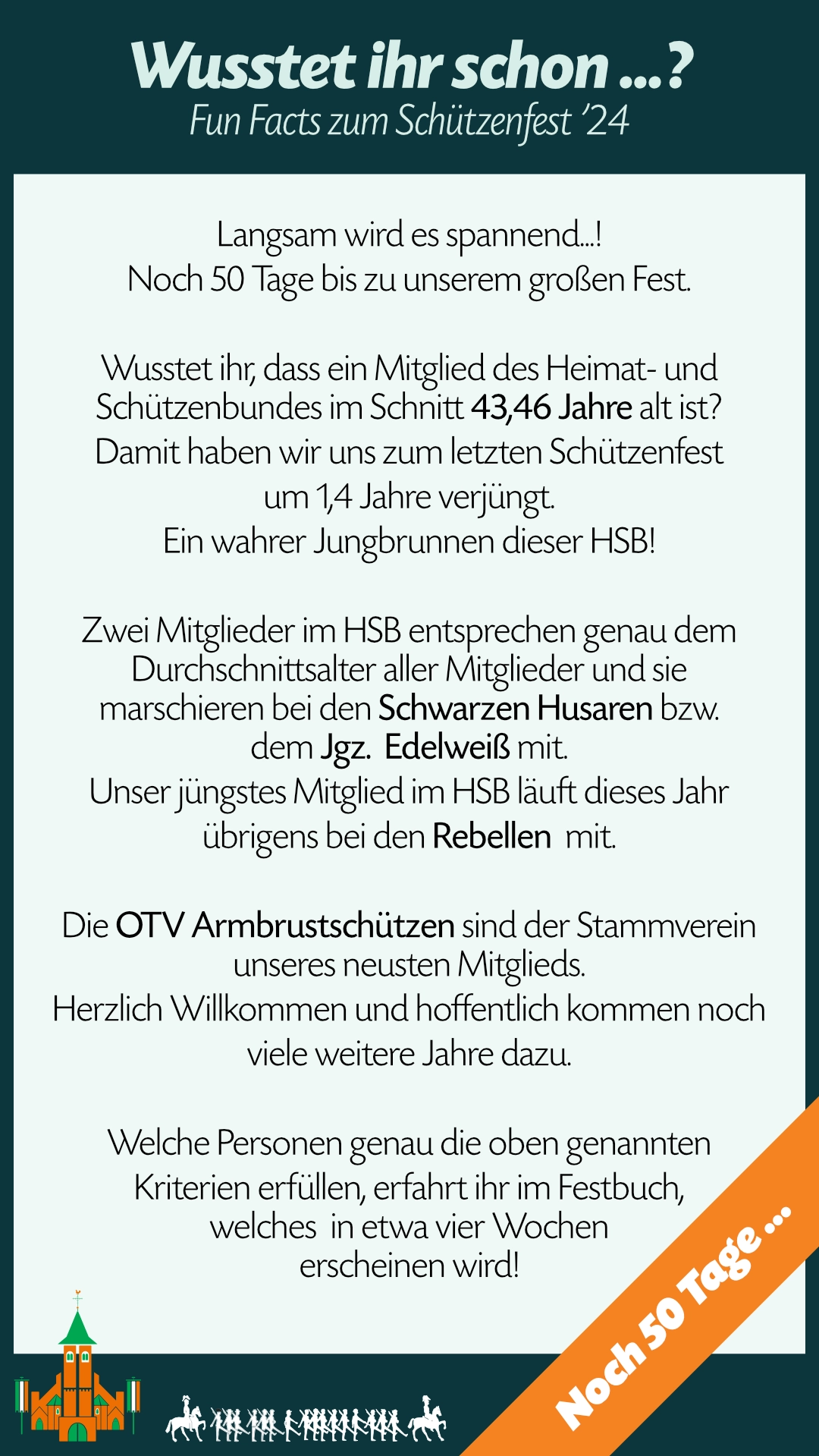 25.07.2024 | Weitere Zahlen - Nur noch 50 Tage bis zum Schützenfest 2024!