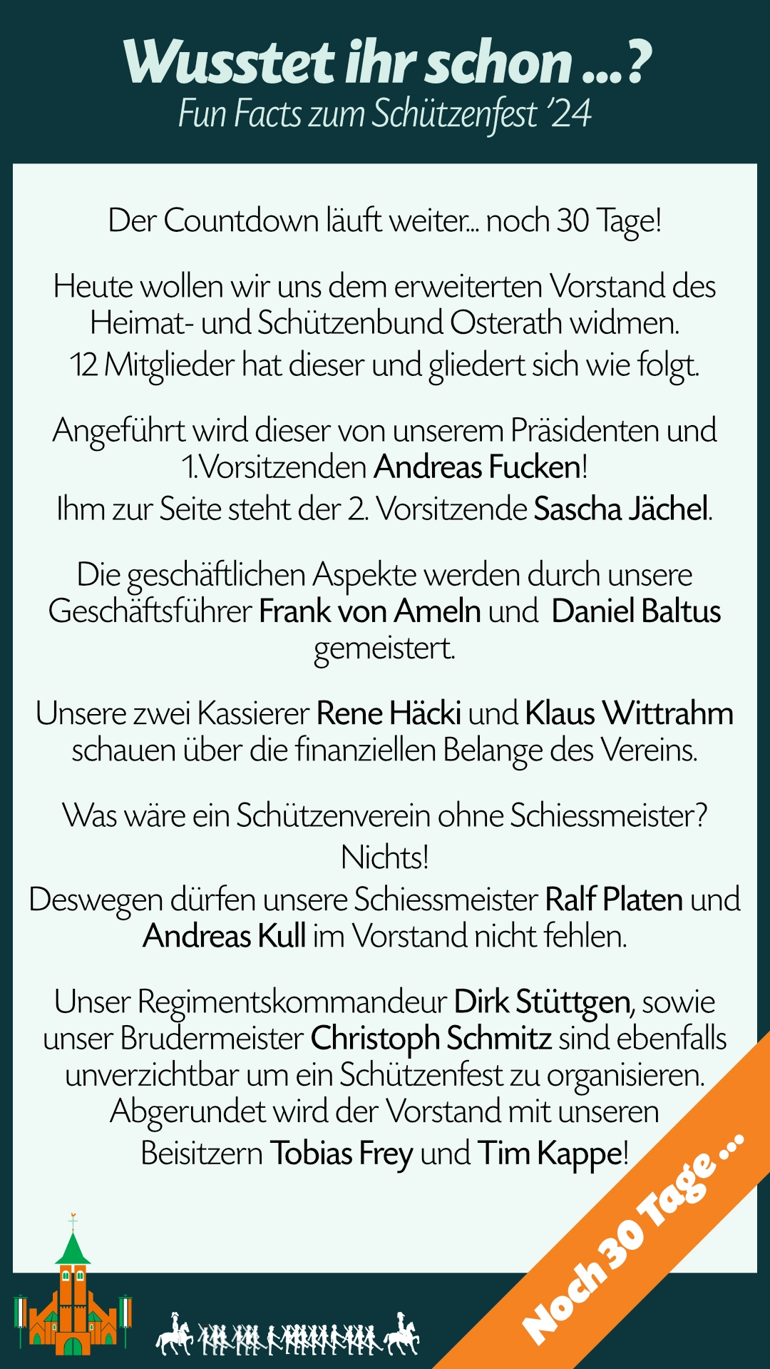 14.08.2024 | Unser Vorstand - Nur noch 30 Tage bis zum Schützenfest 2024!