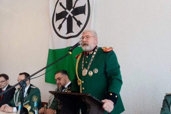 So konnte Brudermeister Christoph Schmitz eine Reihe nicht alltäglicher Ehrengäste begrüßen: neben dem Königshaus, dem HSB-Vorstand um Präsident Andreas Fucken und Ehrenbrudermeister Prof. Norbert Schöndeling war auch Bezirksbundesmeister Dr. Mike Kunze gekommen.