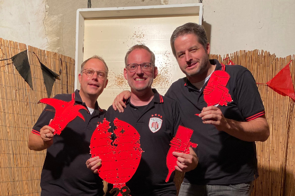 27.09.2023 | Auch die Roten Schill’sche Offiziere haben einen neuen König. Nach mehr als 8 Stunden und 969 Schuss konnte in einem intensiven und fairen Wettkampf Ulrich Klemt die Königswürde erringen. Nach 2002 ist Ulrich zum zweiten Mal König der Roten Schill’sche Offiziere. Als seine Minister stehen ihm die erfahrenen Schützen Niels Schneider und Christian Bommers zur Seite, welche die beiden Pfänder Kopf und linker Flügel erfolgreich für sich gewinnen konnten. Zwischenzeitlich zeigte Ulrich mit dem Abschuss des rechten Flügels schon seine Ambitionen auf die erneute Königswürde.