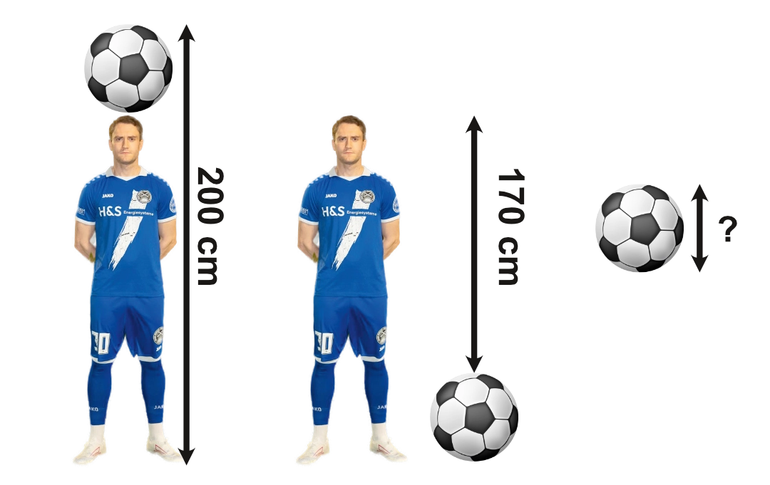 Wenn man den Durchmesser des Fussballs von Fredric abzieht, bleiben 170 cm. Wie groß ist der Fussball? a. 15 cm (Lösungsbuchstaben: HCA) b. 30 cm(Lösungsbuchstaben: KGA) c. 60 cm (Lösungsbuchstaben: MTW) |
